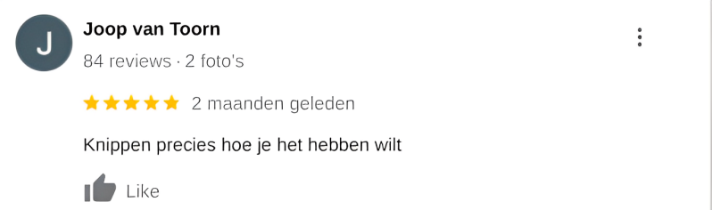 Ik ben net naar de kapper geweest en het ziet er niet uit. De fade is gewoon helemaal kaal geworden. De voorkant is een bloempotkapsel. De bovenkant is het enige wat goed is. De zijkant is het ergste, daar is het stukje kaal stukje kort stukje kaal stukje kort en de fade zit bijna OP mijn hoofd. Daarvoor heb ik 21 euro betaalt. Nooit meer ga ik daarheen